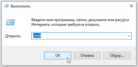 - Нажмите Win + R → введите команду cmd → нажмите OK.