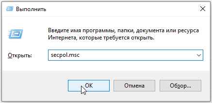- Нажмите Win + R → введите команду secpol.msc → нажмите OK.